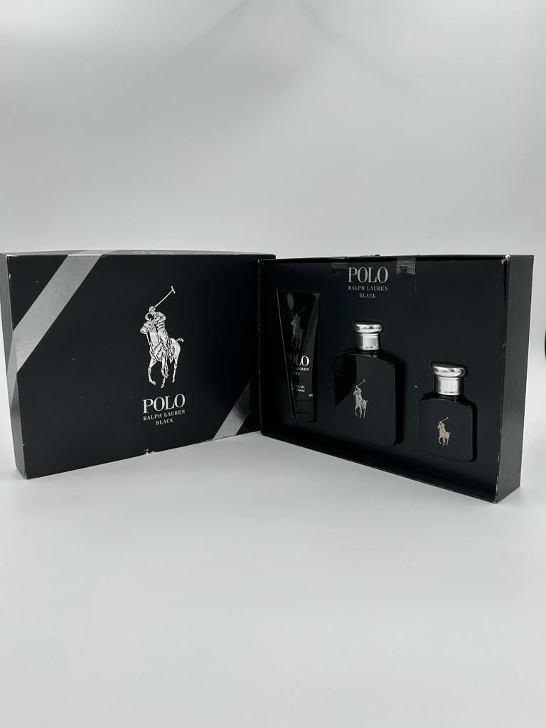 POLO RALPH LAUREN BLACK (M) (H/B) 3PC (100ml after shave gel, 125ml edt, 40ml edt spray)